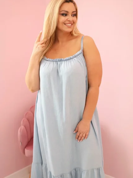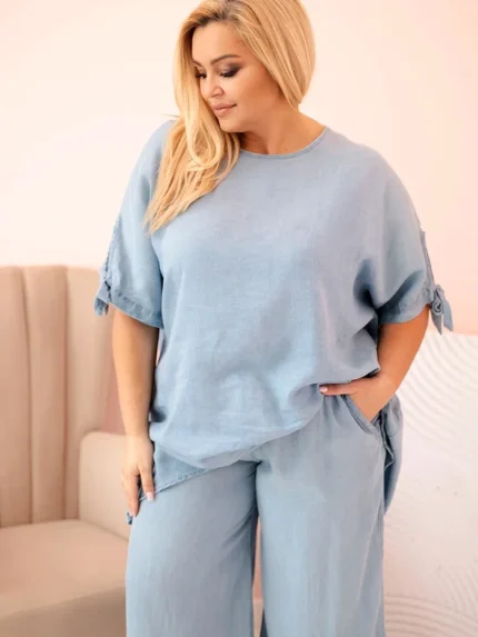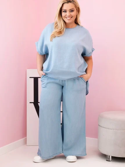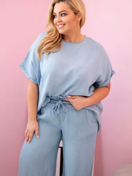 Komplet damski Plus Size z tencelu bluzka i spodnie z wiązaniem jasno jeansowy