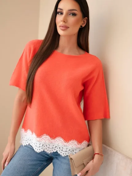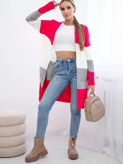 Sweter Kardigan w pasy malinowy+ecru