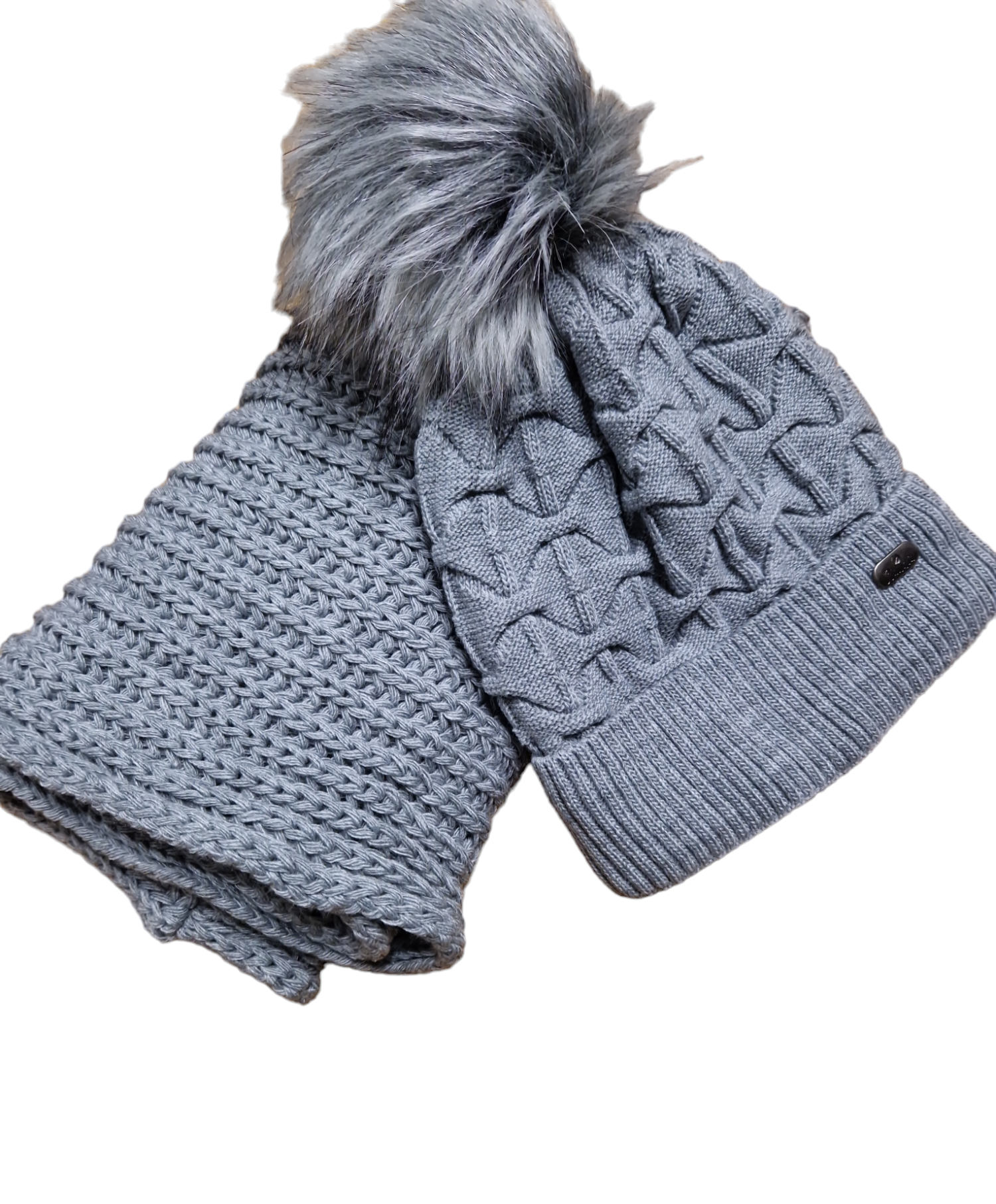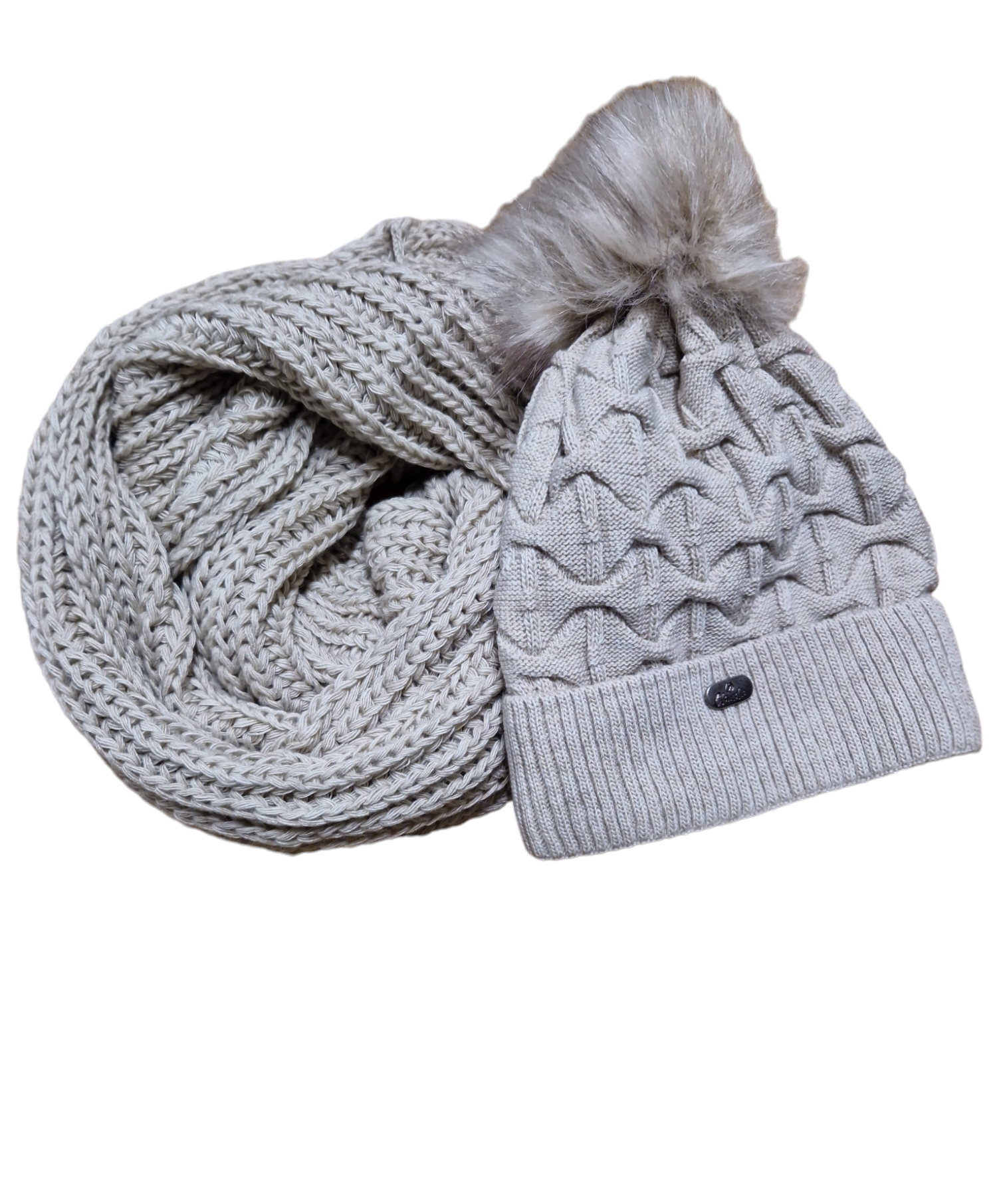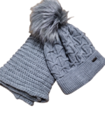 Ciepły i stylowy komplet zimowy dla kobiet, składający się z czapki z pomponem i komina. Wykonany z wysokiej jakości akrylu, który zapewnia doskonałą ochronę przed zimnem i wiatrem.