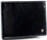 - odszyty z wysokogatunkowej bydlęcej skóry, ale portfel to nie tylko skóra. Wykończony trwałymi materiałami, jak metalowy suwak, zatrzask i logo, odporna na otarcia podszewka czy mocne nici, które zapobiegają pruciu się portfela