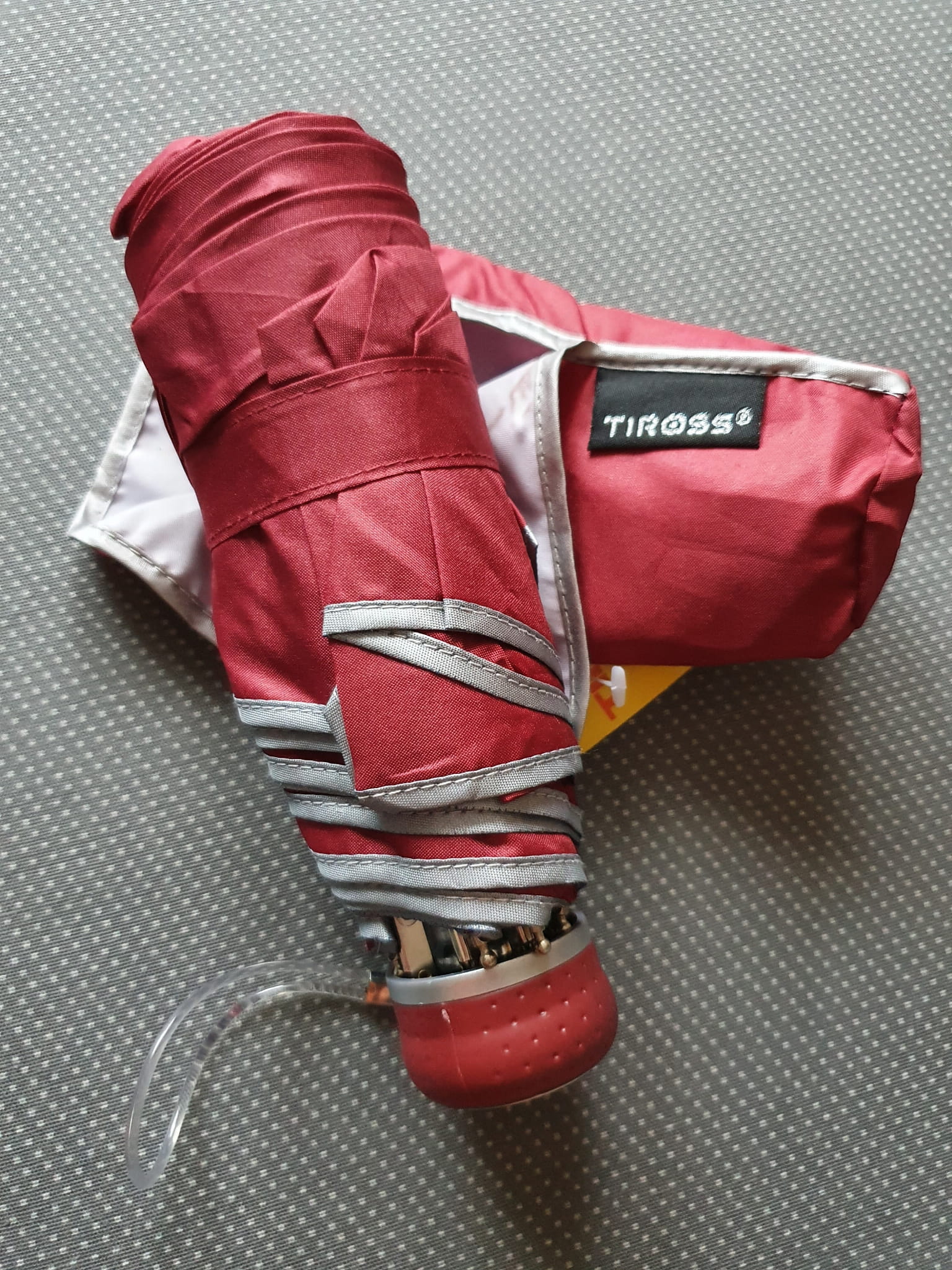 Niewielkich rozmiarów, kieszonkowa parasolka idealnie nadaje się do torebki. Po złożeniu mierzy zaledwie 18 cm.