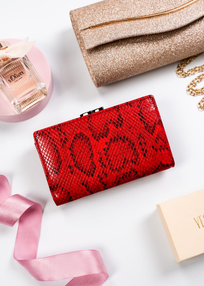 - Portfel jest odszyty z najwyższej jakości skóry naturalnej i ekologicznej. Środek portfela jest wykończony skórą naturalną, zaś strona zewnętrzna to skóra eko o fakturze imitującej skórę węża;