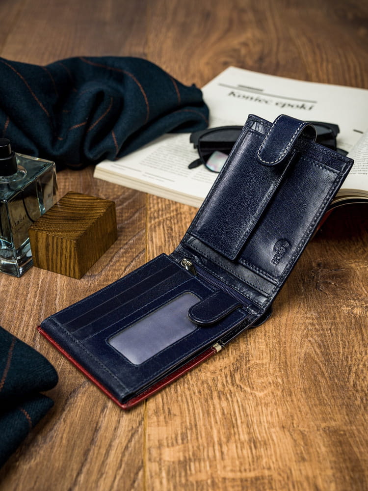 Portfel ma w wyposażeniu sporą przegródkę na fotografię. Przezroczysta przegródka jest również często wykorzystywana do trzymania w niej dowodu osobistego czy prawa jazdy.