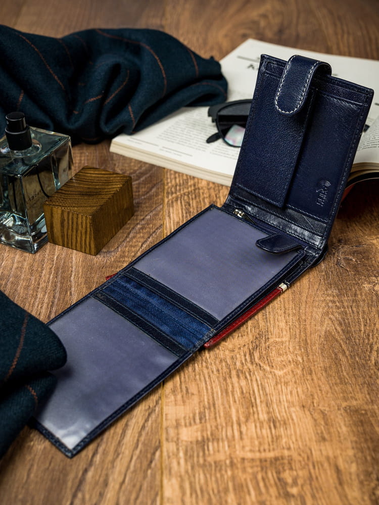 - Ekskluzywny design | Portfel w orientacji poziomej z zapięciem zewnętrznym;