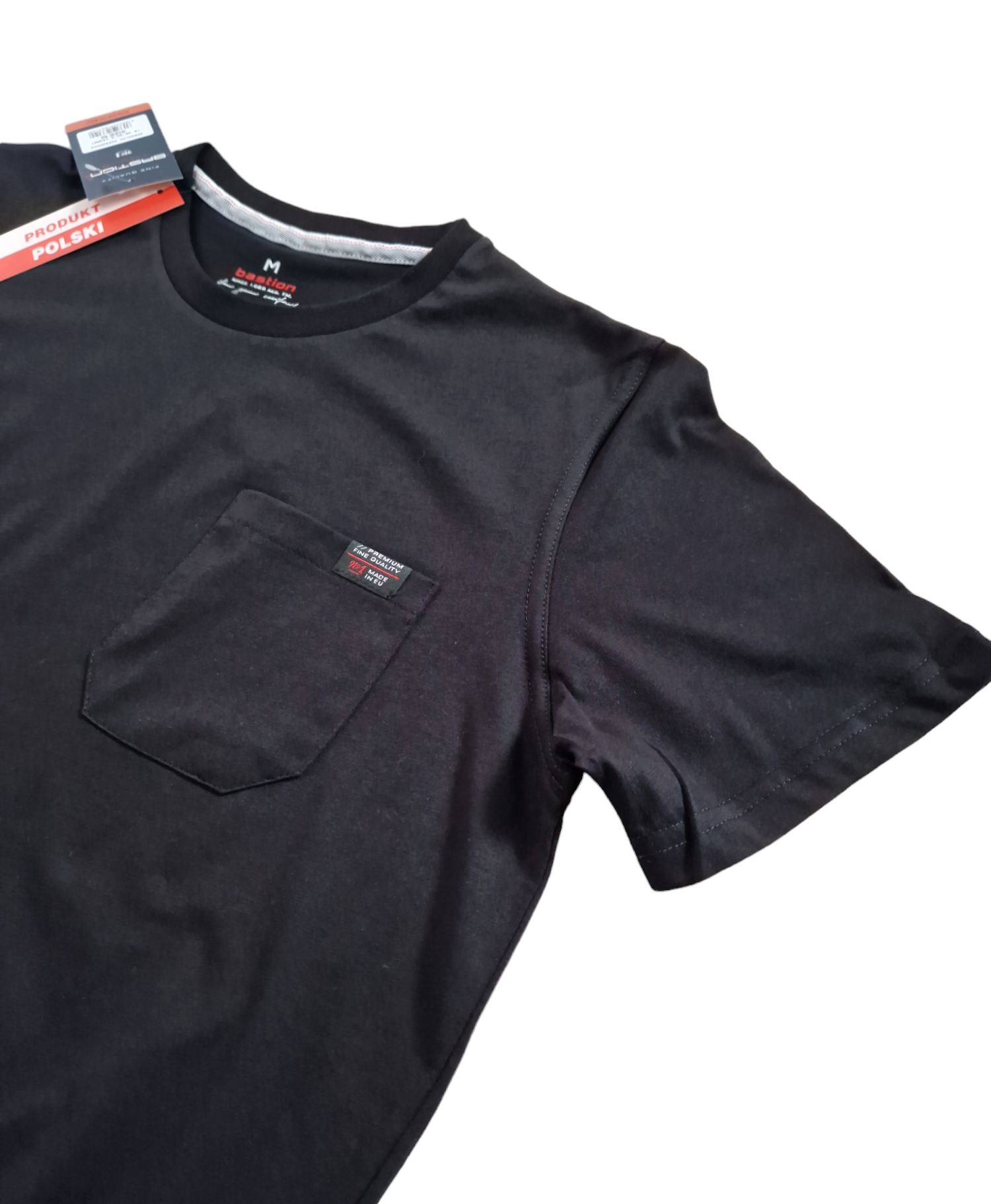 Napisz pierwszą opinię o „Bawełniana koszulka męska Bastion z kieszonką czarna”