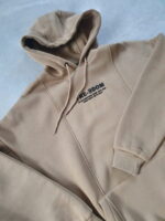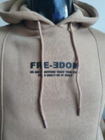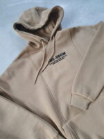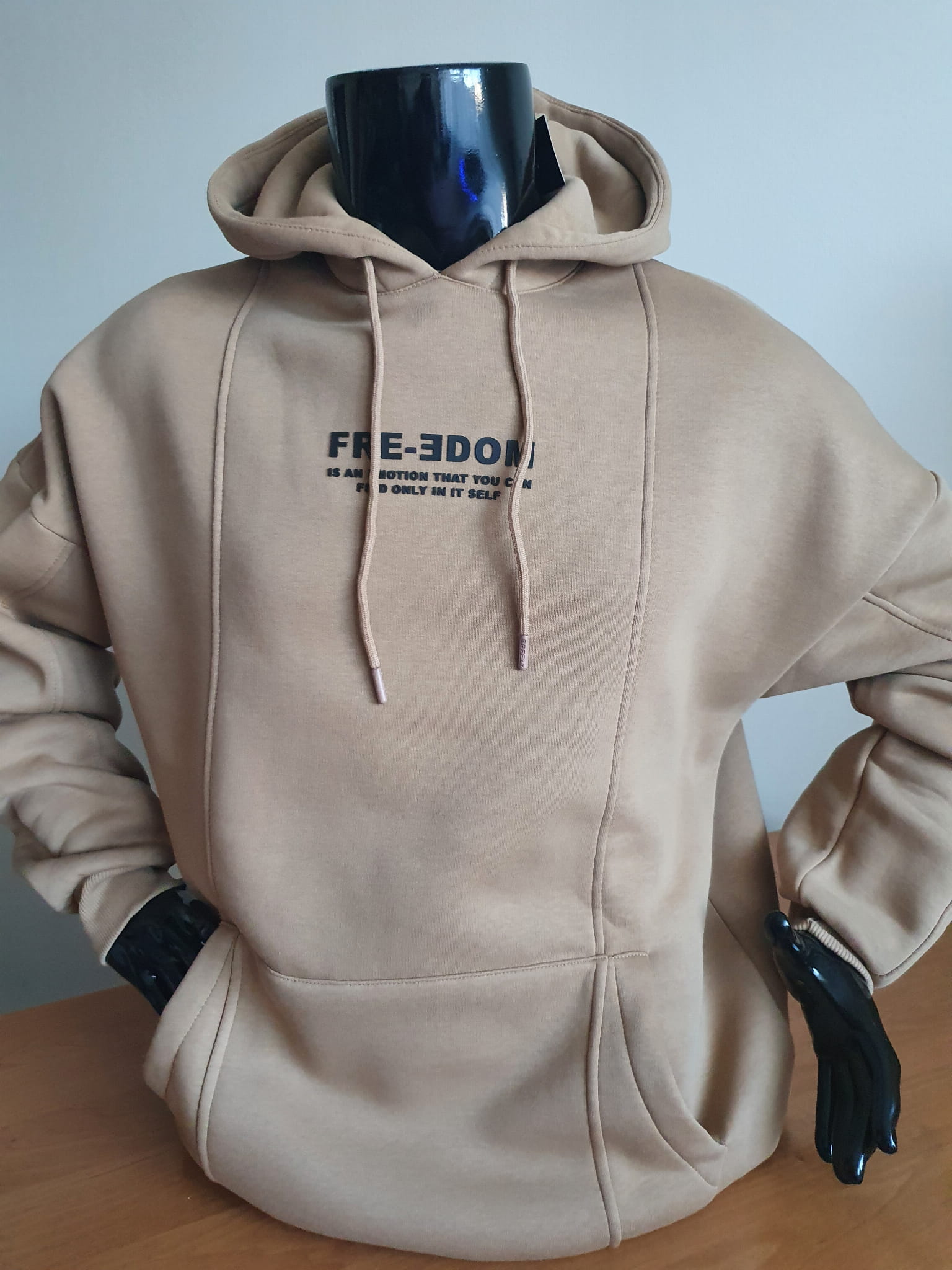 Bluza z kapturem, na przodzie przeszywana, nadruk. W kapturze sznurek ściągający w kolorze bluzy. Elastyczne ściągacze prążek 1×1 przy rękawach i dole bluzy.