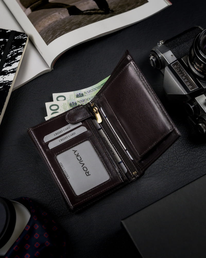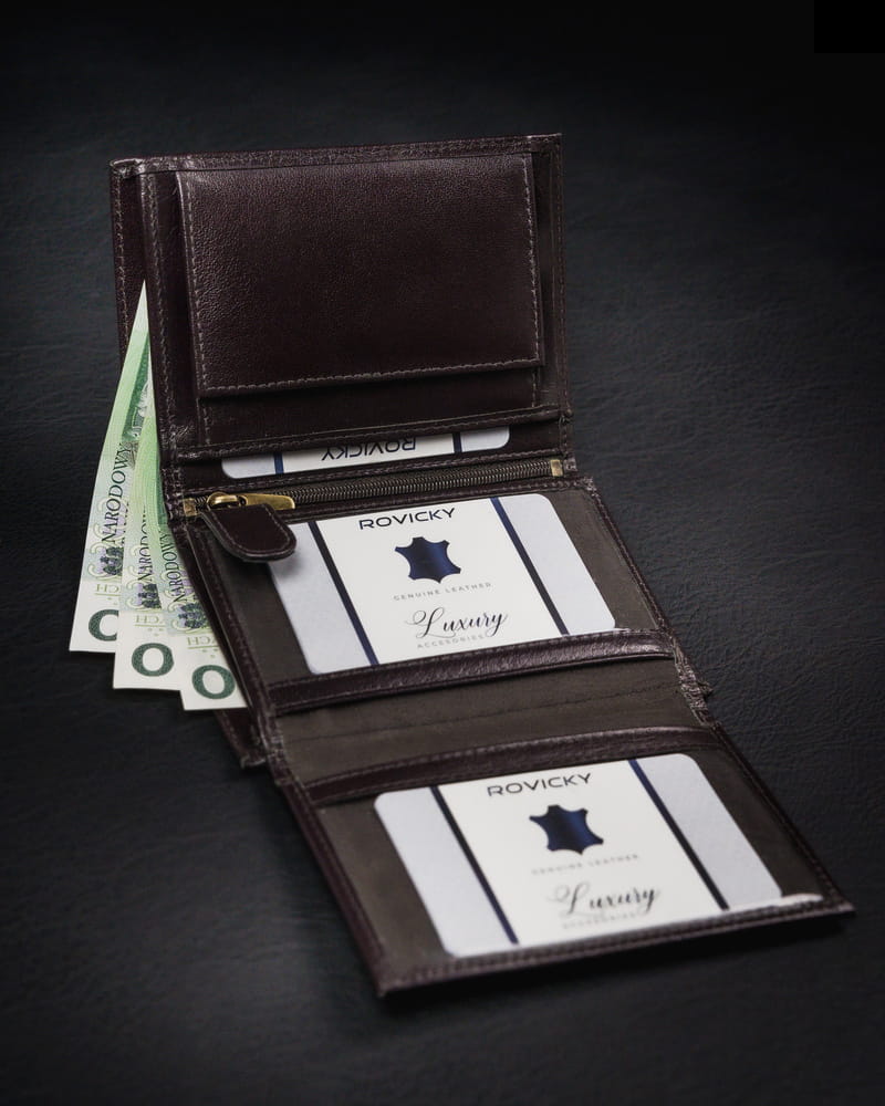 Bogato wyposażony portfel męski z naturalnej skóry licowej — Rovicky