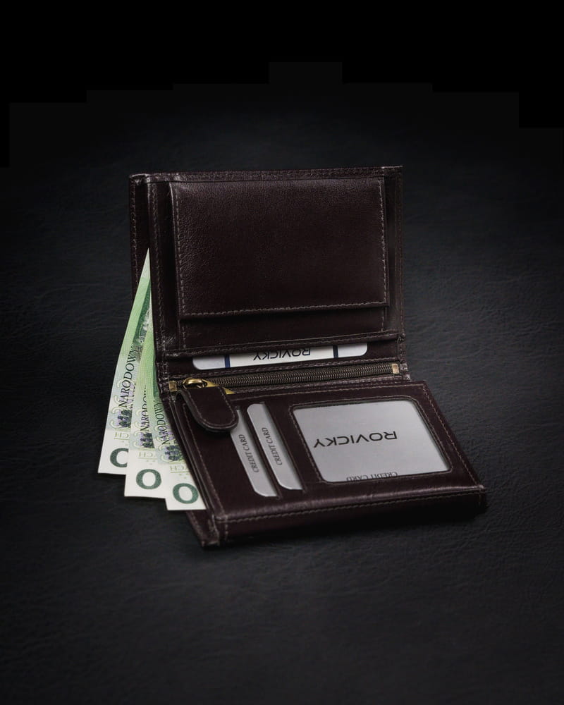 Portfel męski polskiej marki Rovicky® odszyty bardzo trwale z naturalnej skóry bydlęcej licowej, subtelnie połyskującej. Wyprawiona w tradycyjny sposób, miękka i przyjemna w dotyku. Wybierając portfel z tego materiału, masz pewność, że kupujesz produkt na lata!