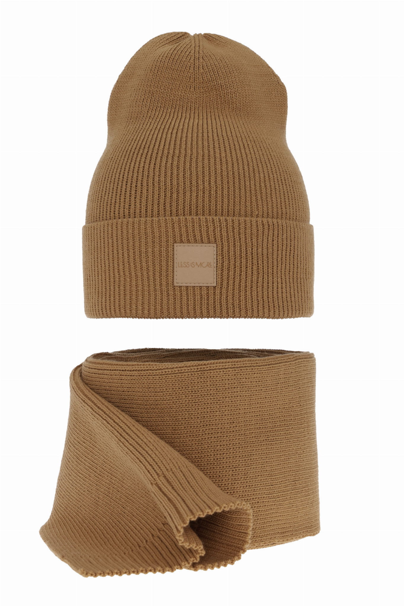 Czapka i szalik damski zimowy komplet, camel, Nathalie