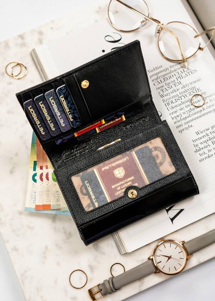 Kieszonki zostały obszyte specjalną podszewką ozdobioną logo marki PETERSON®, która zabezpiecza wnętrze portfela oraz podkreśla jego oryginalność.