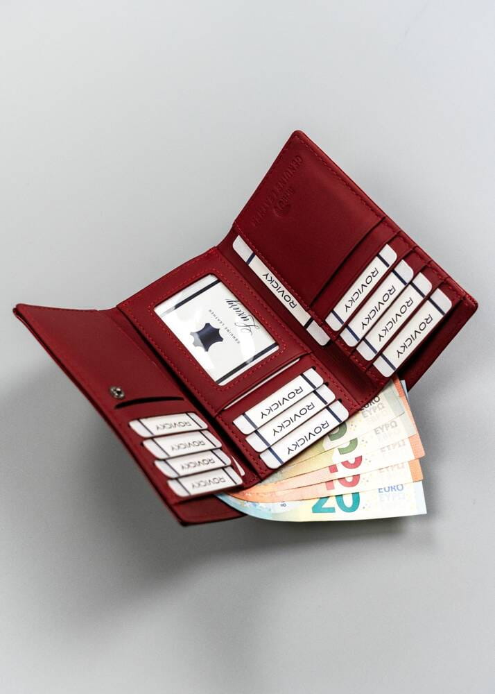 - rozbudowany – system rozmieszczenia przegródek na karty, dokumenty i gotówkę daje olbrzymi komfort użytkowania. Ten model oferuje Tobie to, co powinien oferować każdy portfel: wygodę użytkowania