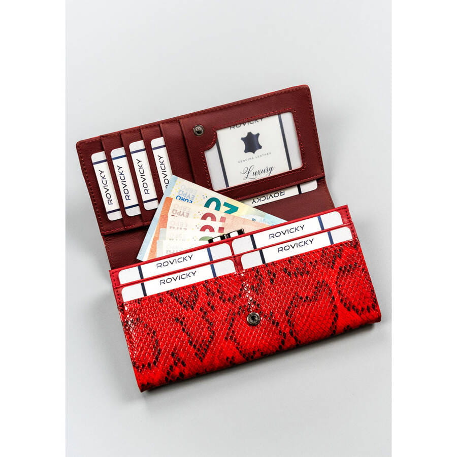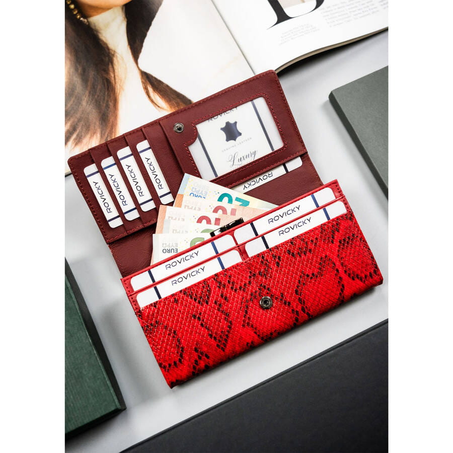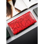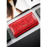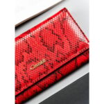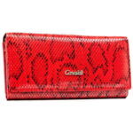 Czerwony portfel damski na zatrzask z wężowym wzorem – Cavaldi