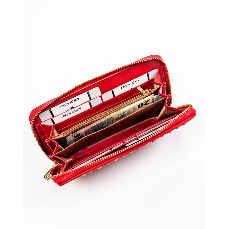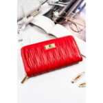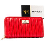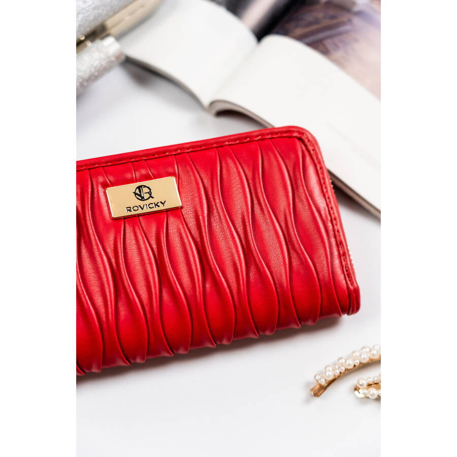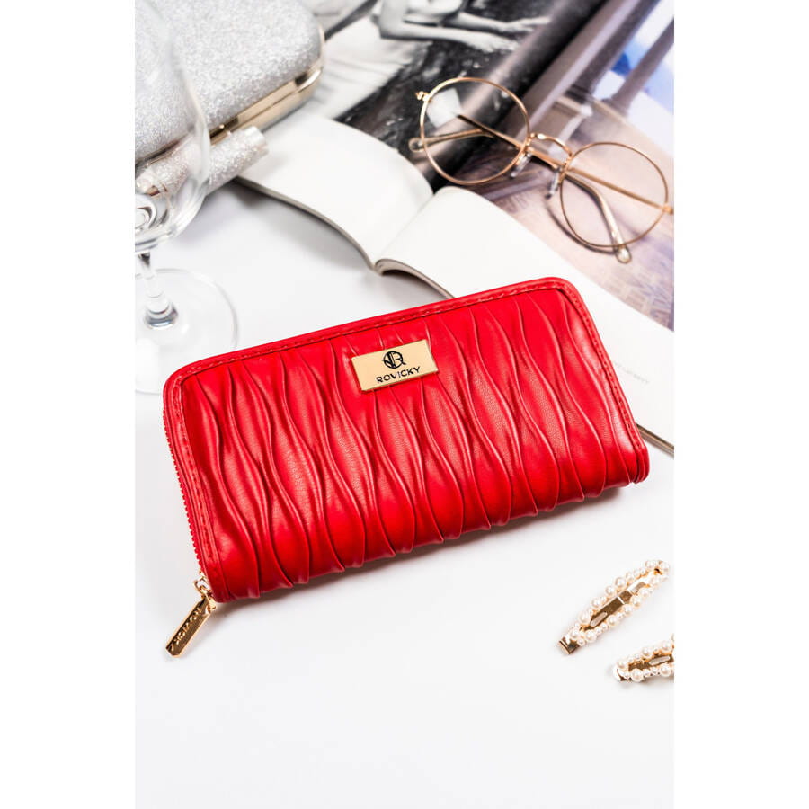 Czerwony portfel damski o marszczonej powierzchni zamykany na suwak – Rovicky