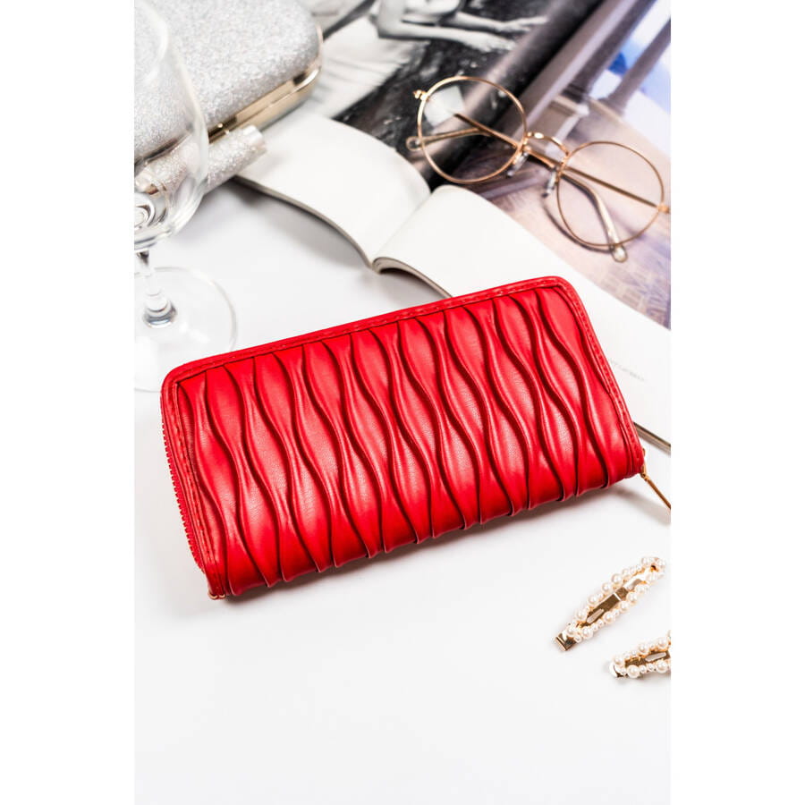 - Falisty design | Portfel o marszczonej powierzchni zewnętrznej w kolorze czerwonym;