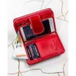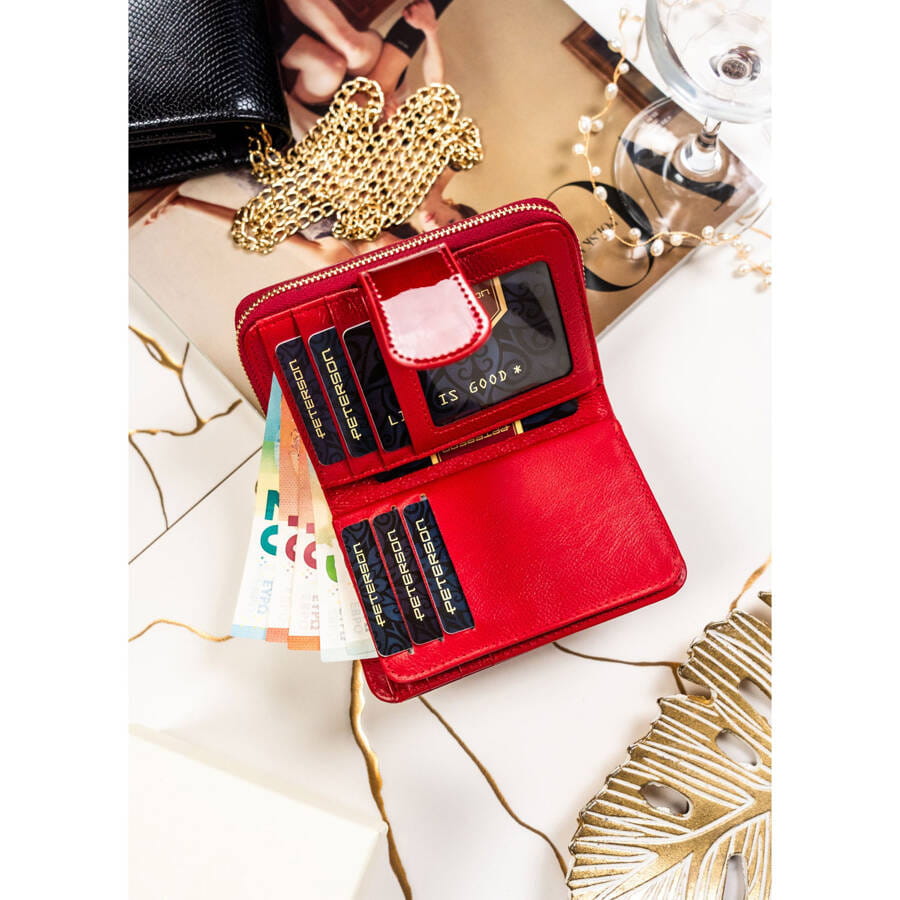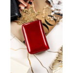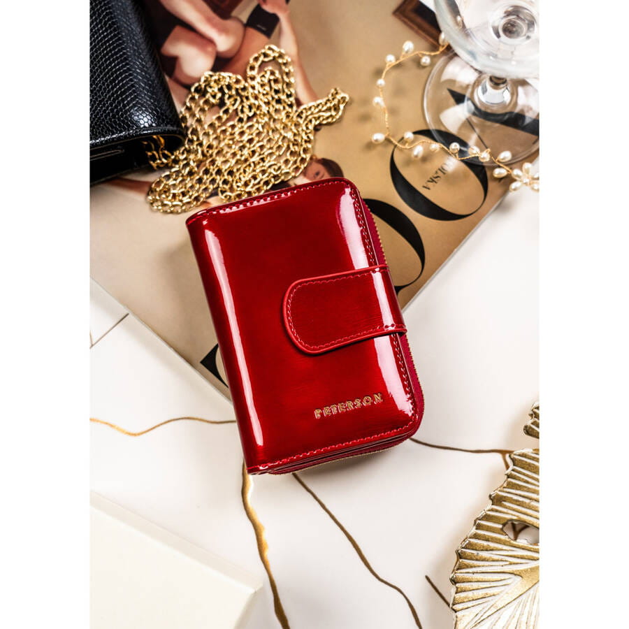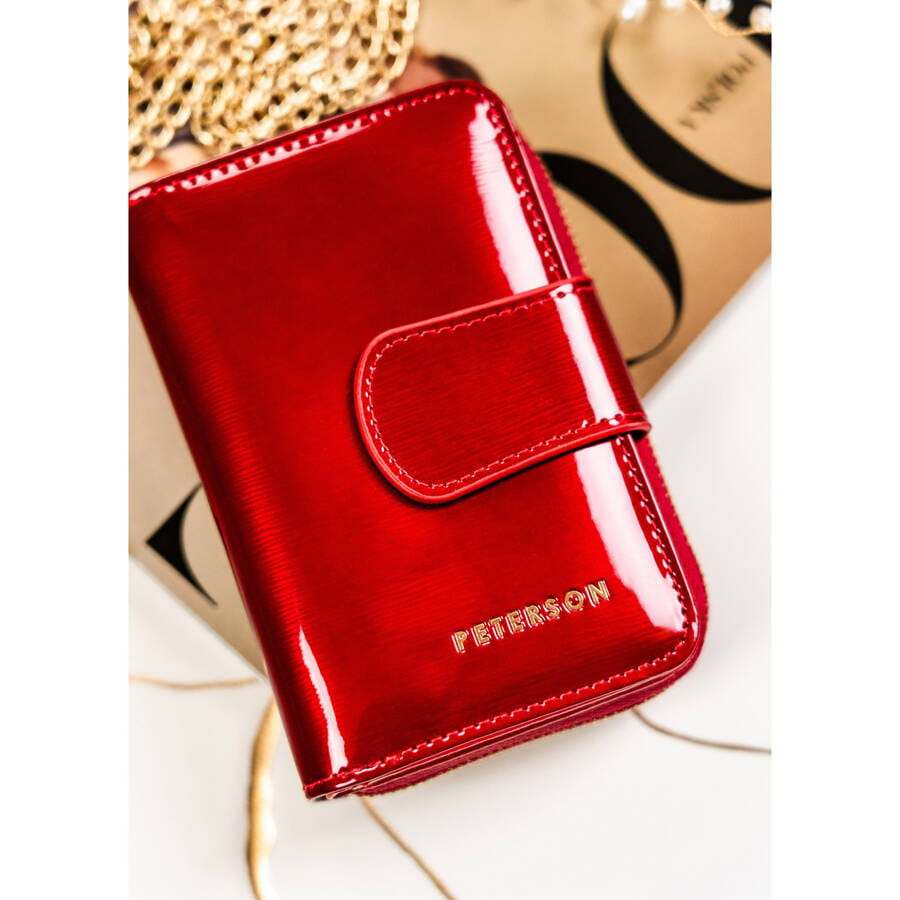 Czerwony portfel damski z lakierowanej skóry naturalnej na zatrzask – Peterson