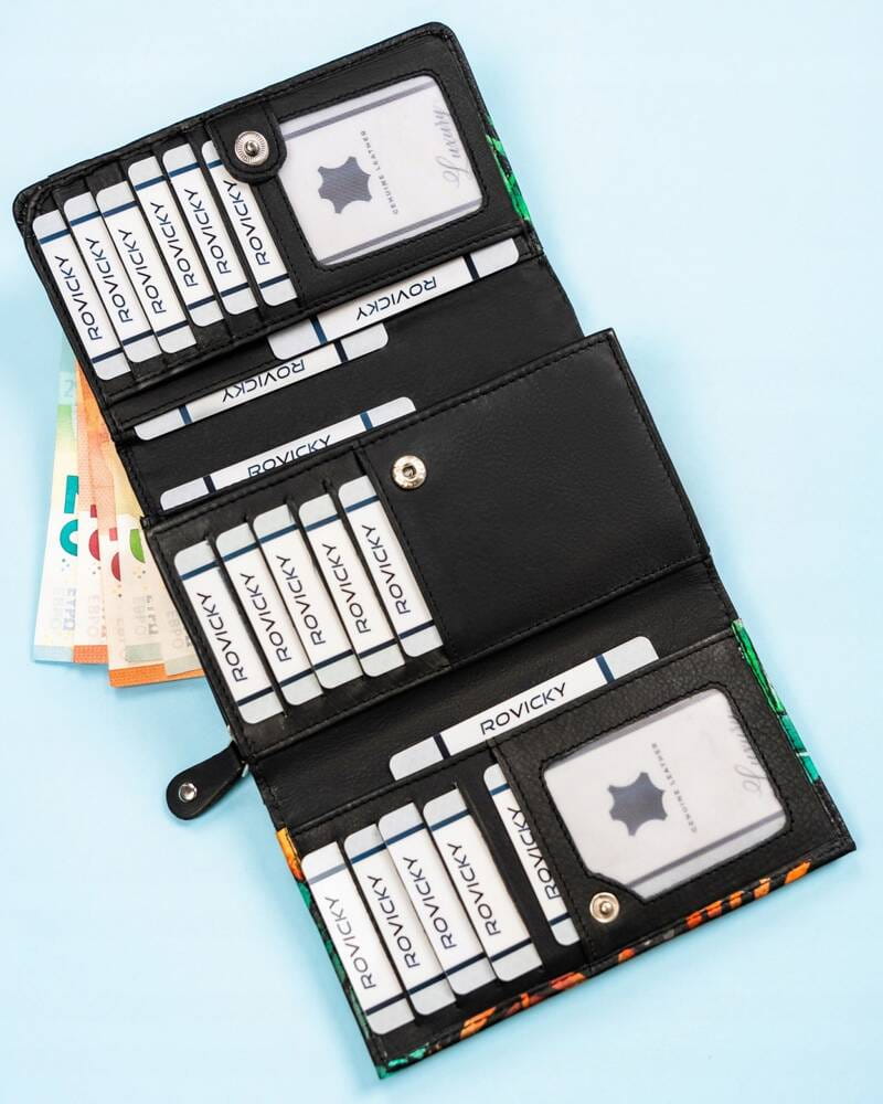 Damski portfel na zatrzask wykonany ze skóry naturalnej – Rovicky