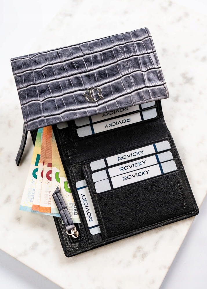 Damski portfel ze skóry naturalnej na zatrzask – Rovicky