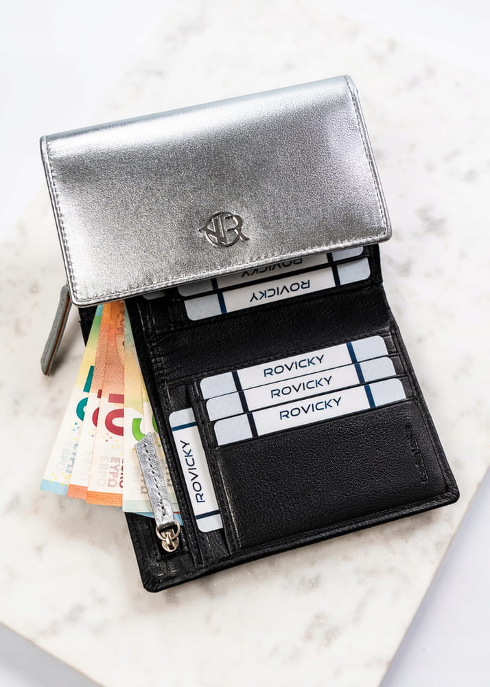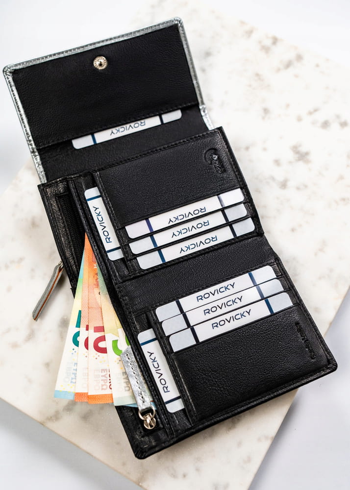 Damski portfel ze skóry naturalnej na zatrzask – Rovicky