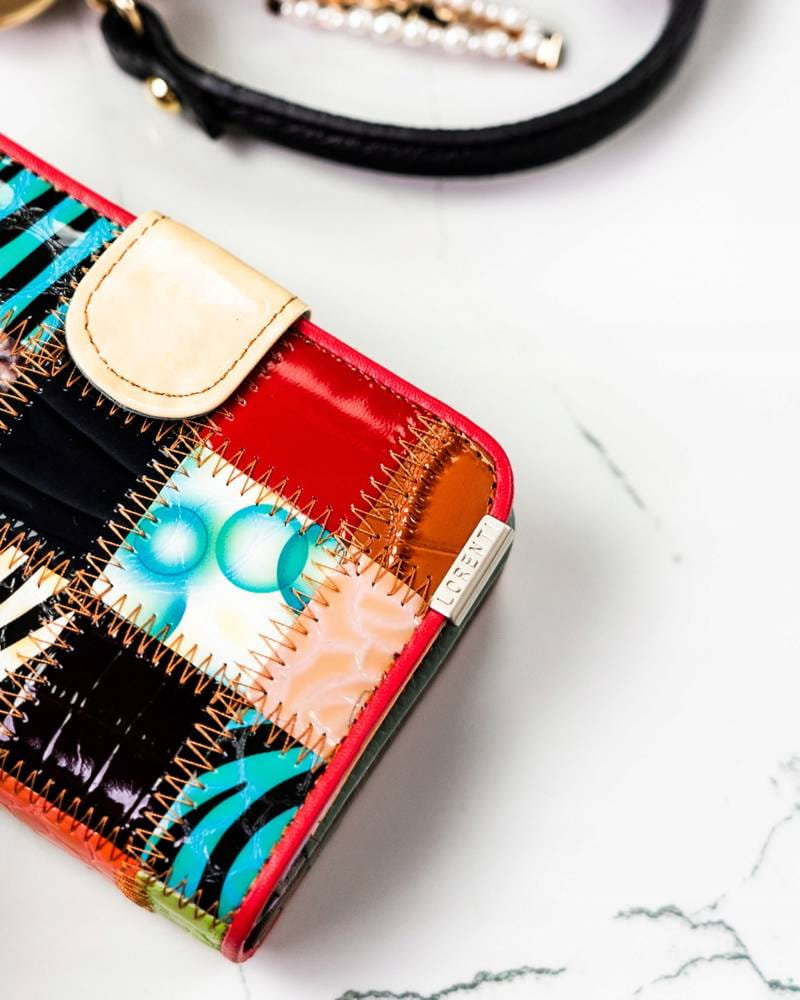 Damski skórzany portfel w patchworkowy wzór — Lorenti