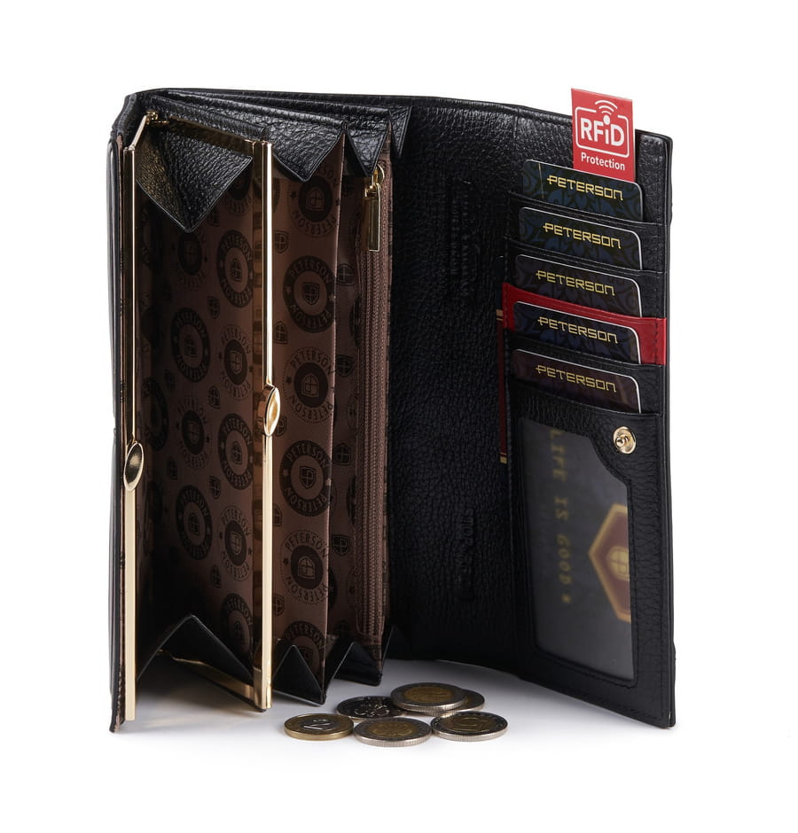 Duży skórzany portfel damski z portmonetką na bigiel – Peterson