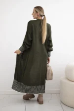 Długi kardigan z kieszeniami włoskiej produkcji to wyjątkowo stylowy i funkcjonalny element garderoby, idealny na chłodniejsze dni. Wykonany z wysokiej jakości materiałów, zapewnia ciepło i komfort noszenia. Posiada praktyczne kieszenie, a ozdobne ściągacze na rękawach i u dołu swetra dodają mu eleganckiego wykończenia i oryginalnego charakteru. Ten kardigan doskonale sprawdzi się w casualowych stylizacjach, a jego dłuższy krój zapewnia dodatkową ochronę przed zimnem, jednocześnie podkreślając sylwetkę. Rozmiar jest uniwersalny i będzie odpowiedni dla Pań noszących rozmiar S, M lub L.