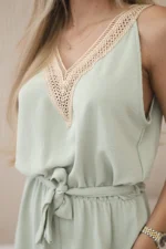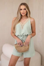 Kombinezon krótki z ozdobną koronką ciemny miętowy
