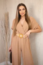 Kombinezon z ozdobnym paskiem w talii camelowy