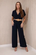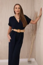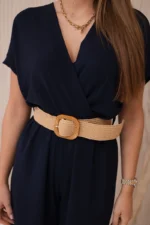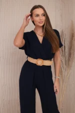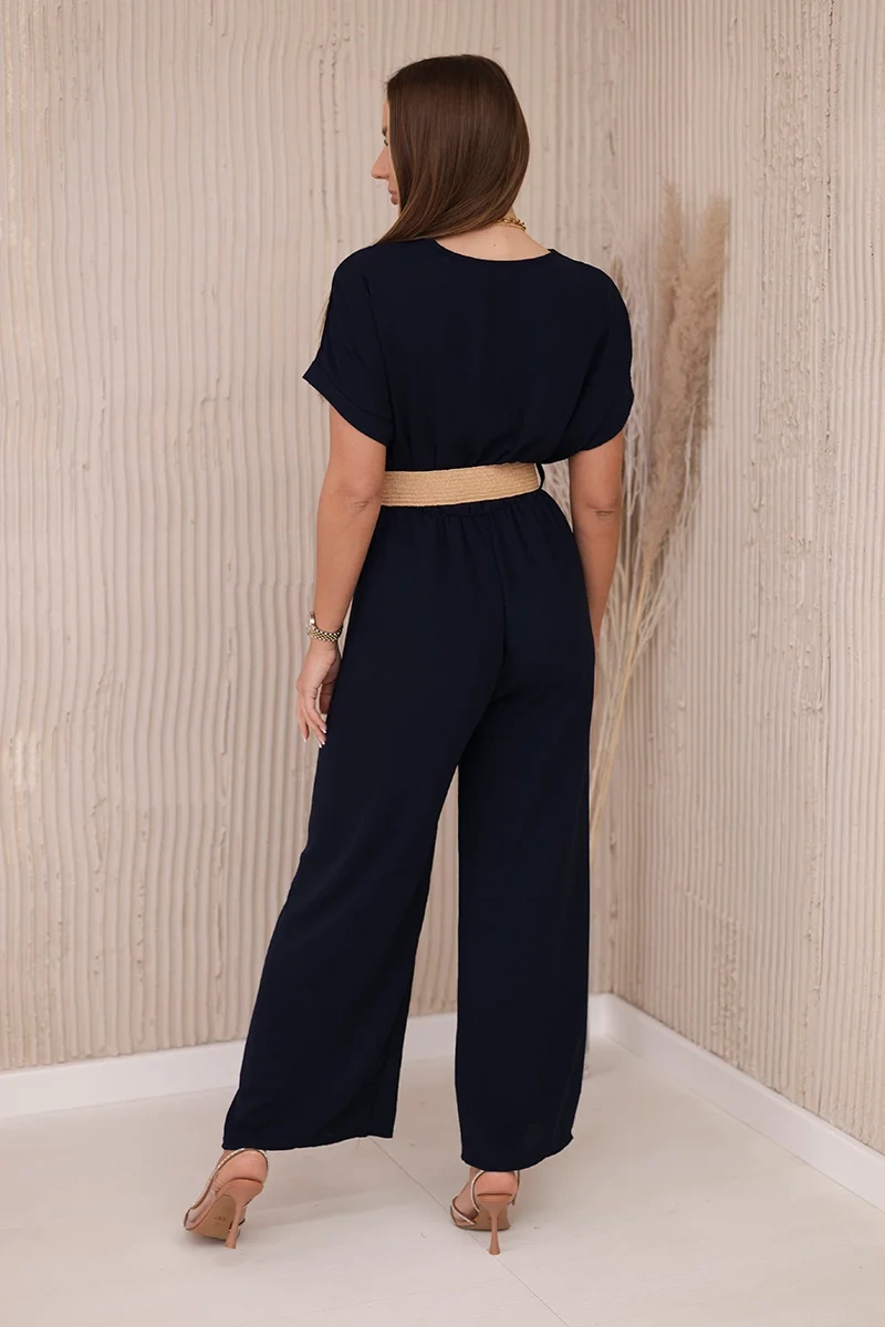 Kombinezon z ozdobnym paskiem w talii granatowy