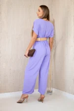 Kombinezon z ozdobnym paskiem w talii jasny fioletowy