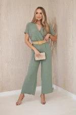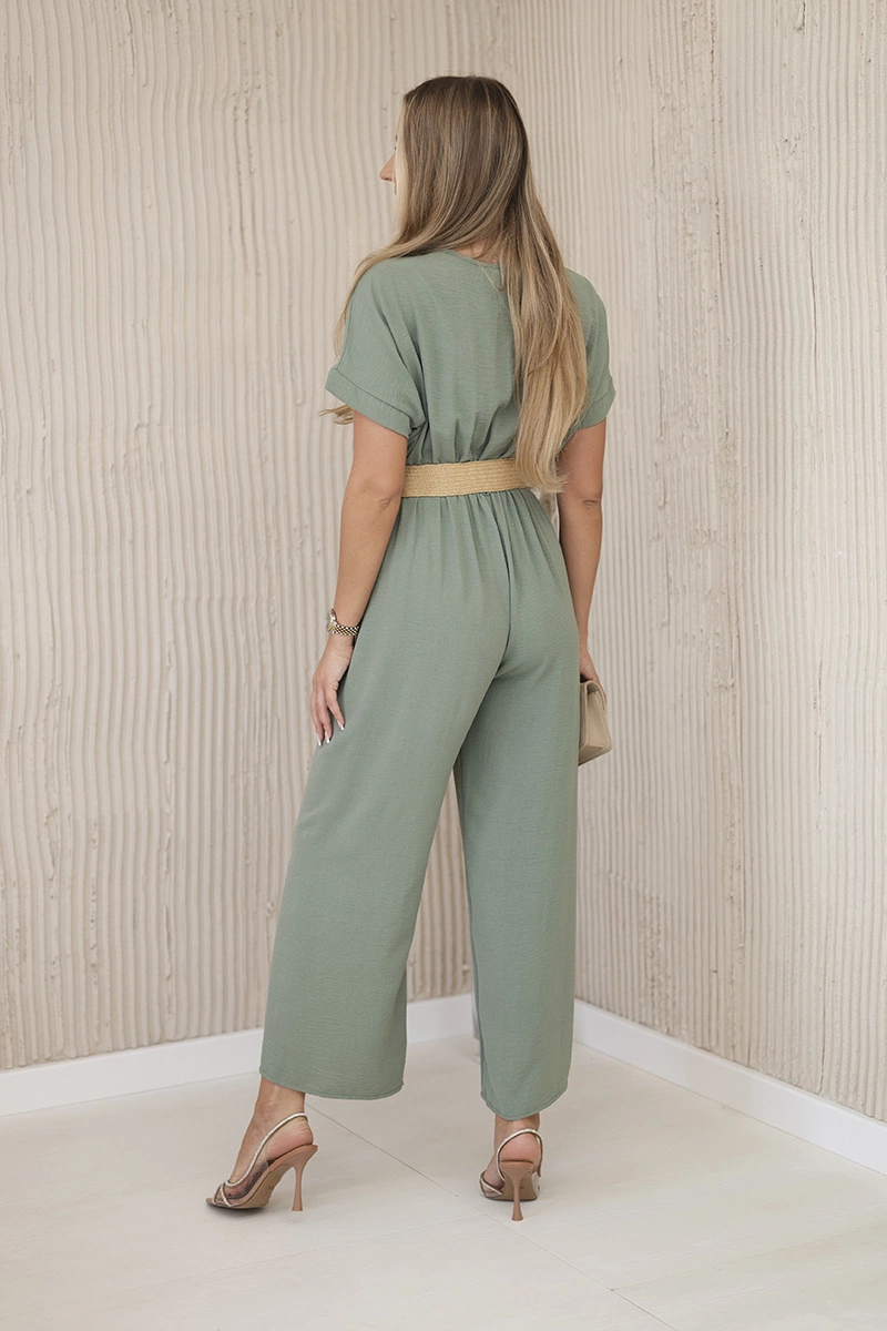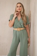 Przedstawiamy Państwu modny kombinezon z ozdobnym paskiem w talii. Kombinezon posiada niepowtarzalny krój. Kombinezon wykonany jest z wysokiej jakości materiału. Rozmiar jest uniwersalny i będzie pasował dla osób w rozmiarze S, M i L.