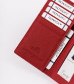 - Bardzo rozbudowany i pojemny portfel – pomimo średnich rozmiarów posiada mnóstwo miejsca na dokumenty, karty i pieniądze.