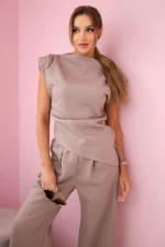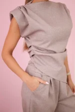 Komplet asymetryczna bluzka + spodnie beżowy melanż