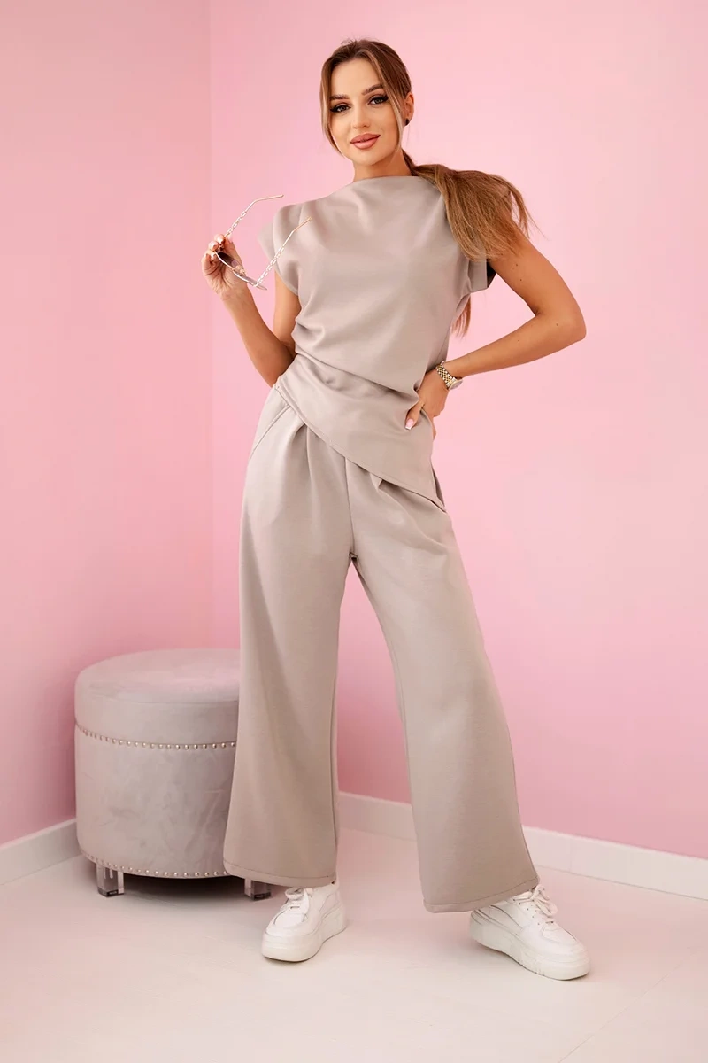 Ten wyjątkowy komplet to idealne połączenie elegancji i komfortu, które podkreśli Twój indywidualny styl. Asymetryczna bluzka zachwyca oryginalnym krojem, nadając stylizacji nowoczesnego charakteru. Jej luźny fason doskonale układa się na sylwetce, maskując ewentualne niedoskonałości i zapewniając swobodę ruchów. Spodnie, idealnie dopasowane do bluzki, posiadają wygodny krój, który gwarantuje komfort noszenia przez cały dzień. Wykonane z wysokiej jakości materiałów, świetnie układają się na ciele i pasują zarówno do codziennych, jak i bardziej eleganckich stylizacji. Komplet asymetryczna bluzka + spodnie to doskonały wybór dla kobiet, które cenią sobie niebanalne fasony i chcą wyglądać stylowo w każdej sytuacji. Idealny zarówno do pracy, na spotkania, jak i na wyjątkowe okazje – stwórz niepowtarzalny look, który wyróżni Cię z tłumu. Rozmiar jest uniwersalny i pasuje dla kobiet noszących rozmiar S, M lub L.