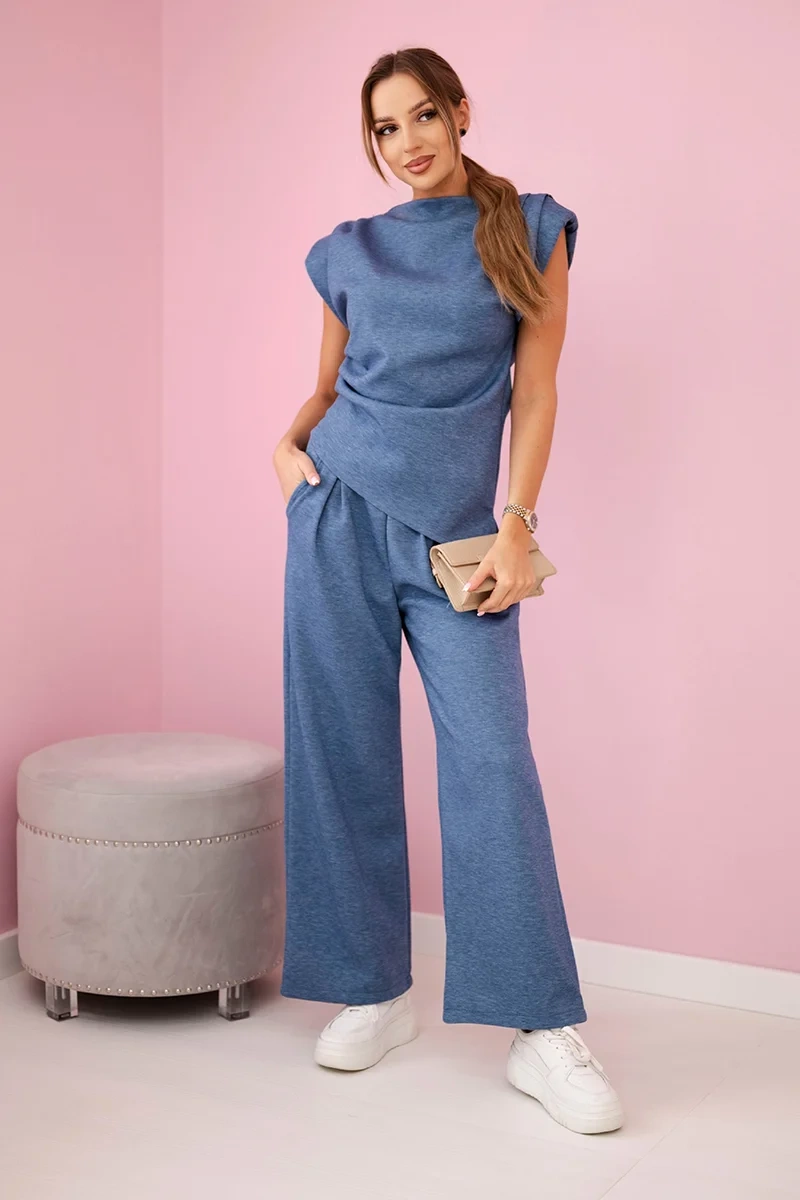 Komplet asymetryczna bluzka + spodnie jeansowy melanż