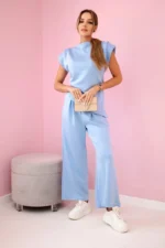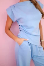 Ten wyjątkowy komplet to idealne połączenie elegancji i komfortu, które podkreśli Twój indywidualny styl. Asymetryczna bluzka zachwyca oryginalnym krojem, nadając stylizacji nowoczesnego charakteru. Jej luźny fason doskonale układa się na sylwetce, maskując ewentualne niedoskonałości i zapewniając swobodę ruchów. Spodnie, idealnie dopasowane do bluzki, posiadają wygodny krój, który gwarantuje komfort noszenia przez cały dzień. Wykonane z wysokiej jakości materiałów, świetnie układają się na ciele i pasują zarówno do codziennych, jak i bardziej eleganckich stylizacji. Komplet asymetryczna bluzka + spodnie to doskonały wybór dla kobiet, które cenią sobie niebanalne fasony i chcą wyglądać stylowo w każdej sytuacji. Idealny zarówno do pracy, na spotkania, jak i na wyjątkowe okazje – stwórz niepowtarzalny look, który wyróżni Cię z tłumu. Rozmiar jest uniwersalny i pasuje dla kobiet noszących rozmiar S, M lub L.