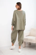 Włoski komplet to połączenie elegancji i wygody, które idealnie pasuje do wielu okazji. Ta tkanina jest nie tylko miękka i przyjemna w dotyku, ale także pięknie się prezentuje. Bluza to doskonały element garderoby zarówno na co dzień, jak i na specjalne okazje. Możesz nosić ją solo lub zestawić z inną częścią garderoby, tworząc niezwykle stylowy outfit. Spodnie to doskonałe uzupełnienie kompletu. Ich luźny krój pozwala na swobodę ruchów, co sprawia, że są one nie tylko stylowe, ale także bardzo wygodne. Wybierając spodnie, wybierasz komfort i elegancję w jednym. Włoski komplet to doskonały wybór dla tych, którzy cenią sobie wysoką jakość i wyjątkowy styl. Bez względu na to, czy wybierasz się na spotkanie z przyjaciółmi, do pracy, czy na wieczorne wyjście, ten zestaw z pewnością wyróżni cię z tłumu. Rozmiar jest uniwersalny i pasuje dla kobiet noszących rozmiar S, M lub L.