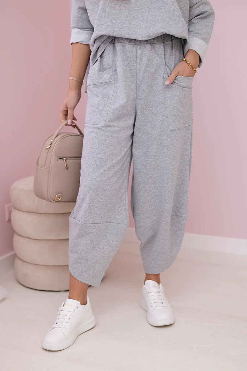 Włoski komplet to połączenie elegancji i wygody, które idealnie pasuje do wielu okazji. Ta tkanina jest nie tylko miękka i przyjemna w dotyku, ale także pięknie się prezentuje. Bluza to doskonały element garderoby zarówno na co dzień, jak i na specjalne okazje. Możesz nosić ją solo lub zestawić z inną częścią garderoby, tworząc niezwykle stylowy outfit. Spodnie to doskonałe uzupełnienie kompletu. Ich luźny krój pozwala na swobodę ruchów, co sprawia, że są one nie tylko stylowe, ale także bardzo wygodne. Wybierając spodnie, wybierasz komfort i elegancję w jednym. Włoski komplet to doskonały wybór dla tych, którzy cenią sobie wysoką jakość i wyjątkowy styl. Bez względu na to, czy wybierasz się na spotkanie z przyjaciółmi, do pracy, czy na wieczorne wyjście, ten zestaw z pewnością wyróżni cię z tłumu.  Rozmiar jest uniwersalny i pasuje dla kobiet noszących rozmiar S, M lub L.