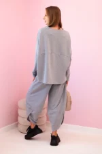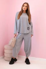 Włoski komplet to połączenie elegancji i wygody, które idealnie pasuje do wielu okazji. Ta tkanina jest nie tylko miękka i przyjemna w dotyku, ale także pięknie się prezentuje. Bluza to doskonały element garderoby zarówno na co dzień, jak i na specjalne okazje. Możesz nosić ją solo lub zestawić z inną częścią garderoby, tworząc niezwykle stylowy outfit. Spodnie to doskonałe uzupełnienie kompletu. Ich luźny krój pozwala na swobodę ruchów, co sprawia, że są one nie tylko stylowe, ale także bardzo wygodne. Wybierając spodnie, wybierasz komfort i elegancję w jednym. Włoski komplet to doskonały wybór dla tych, którzy cenią sobie wysoką jakość i wyjątkowy styl. Bez względu na to, czy wybierasz się na spotkanie z przyjaciółmi, do pracy, czy na wieczorne wyjście, ten zestaw z pewnością wyróżni cię z tłumu. Rozmiar jest uniwersalny i pasuje dla kobiet noszących rozmiar S, M lub L.