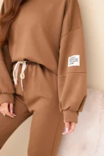 Komplet z wiskozy, składający się z bluzy i spodni, to idealny wybór dla osób ceniących wygodę i elegancję. Wykonany z miękkiej, oddychającej wiskozy, zapewnia komfort noszenia przez cały dzień, doskonale dopasowując się do sylwetki. Bluza ma luźny, swobodny krój, a spodnie charakteryzują się elastyczną talią, co gwarantuje wygodę i swobodę ruchów. Ten zestaw świetnie sprawdzi się zarówno na co dzień, jak i na bardziej casualowe wyjścia, łącząc w sobie stylowy wygląd i funkcjonalność. Rozmiar jest uniwersalny i pasuje dla kobiet noszących rozmiar S, M lub L.
