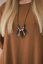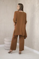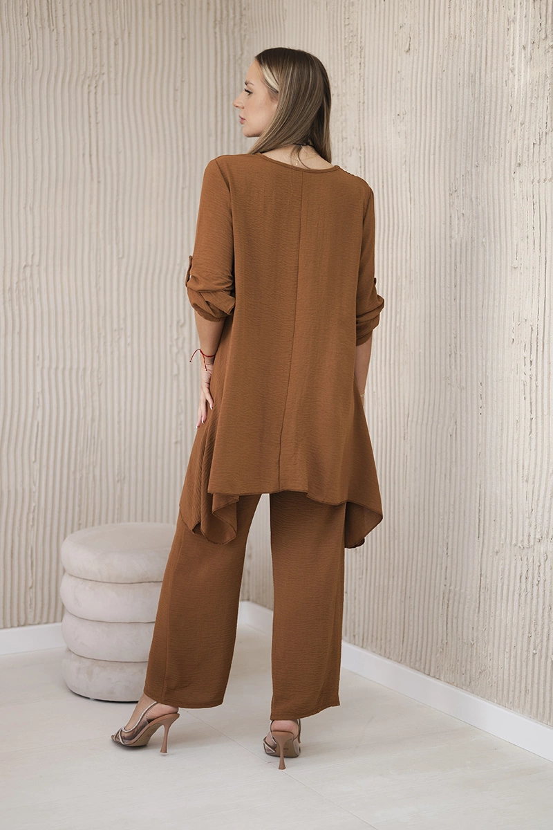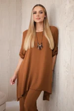 Komplet bluzka + spodnie z wisiorkiem ciemny camelowy