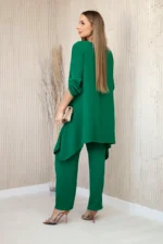 Komplet włoski dwuczęściowy składający się z rozkloszowanej bluzki oraz spodni to elegancki zestaw, który dodaje uroku i stylu każdej stylizacji. Bluzka o rozkloszowanym kroju nadaje subtelnej kobiecości, podkreślając figurę, a jednocześnie zapewniając swobodę ruchów. Klasyczny fason spodni sprawia, że doskonale komponują się z elegancką bluzką, tworząc spójną i stylową całość. Dodatkowo, wisiorek w kształcie klucza stanowi uroczy detal, który dodaje oryginalności i charakteru temu zestawowi, tworząc harmonijną kompozycję. To elegancki dodatek, który podkreśla wyjątkowość i dbałość o detale w całej stylizacji. Taki komplet włoski doskonale nadaje się na wiele okazji, od spotkań biznesowych po romantyczne randki. Jest to wyrafinowana opcja dla osób ceniących sobie elegancję i wygodę w jednym. Rozmiar jest uniwersalny i pasuje dla kobiet noszących rozmiar S, M lub L.