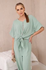 Komplet włoski z bluzką wiązaną z przodu i spodniami z szeroką nogawką to idealny wybór dla kobiet, które cenią sobie wygodę i styl w jednym. Bluzka zawiązywana z przodu na guziki, dodaje subtelnej kobiecości. Spodnie z szeroką nogawką, wykonane z przyjemnego w dotyku materiału, zapewniają swobodę ruchów i wygodę podczas noszenia. Taki kompletny zestaw można nosić na różne okazje – zarówno do pracy, jak i na randki czy spotkania ze znajomymi. Połączony z eleganckimi butami i dodatkami, takimi jak torebka czy biżuteria, stworzy stylową i modną stylizację. Rozmiar jest uniwersalny i będzie odpowiedni dla Pań w rozmiarze S, M lub L.