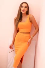 Komplet damska top i spódnica prążkowana pomarańczowy