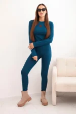 Ten komplet damski bawełniany z długim rękawem i legginsami to idealny wybór na co dzień – wygodny, dopasowany i wykonany z elastycznej, prążkowanej dzianiny. Składa się z długiej, dopasowanej bluzki z okrągłym dekoltem oraz legginsów z wysokim stanem, które pięknie podkreślają sylwetkę.