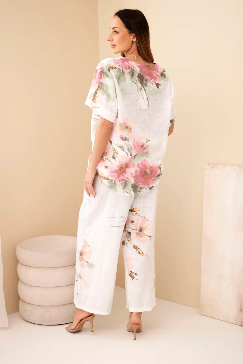 Komplet damski bawełniany z krótkim rękawem i szeroką nogawką biały