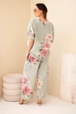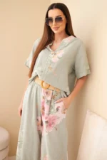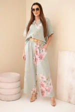 Komplet damski bawełniany z krótkim rękawem i szeroką nogawką to stylowa i niezwykle wygodna propozycja na cieplejsze dni. Zestaw składa się z lekkiej bluzki z krótkim rękawem oraz luźnych spodni z szeroką nogawką, które razem tworzą modną i bardzo kobiecą stylizację. Naturalny materiał sprawia, że komplet jest przewiewny i komfortowy w noszeniu nawet podczas gorących dni.