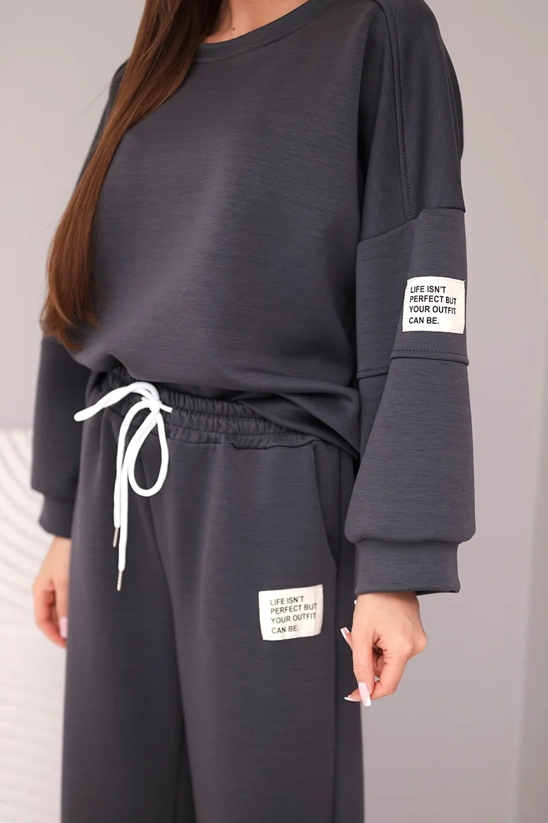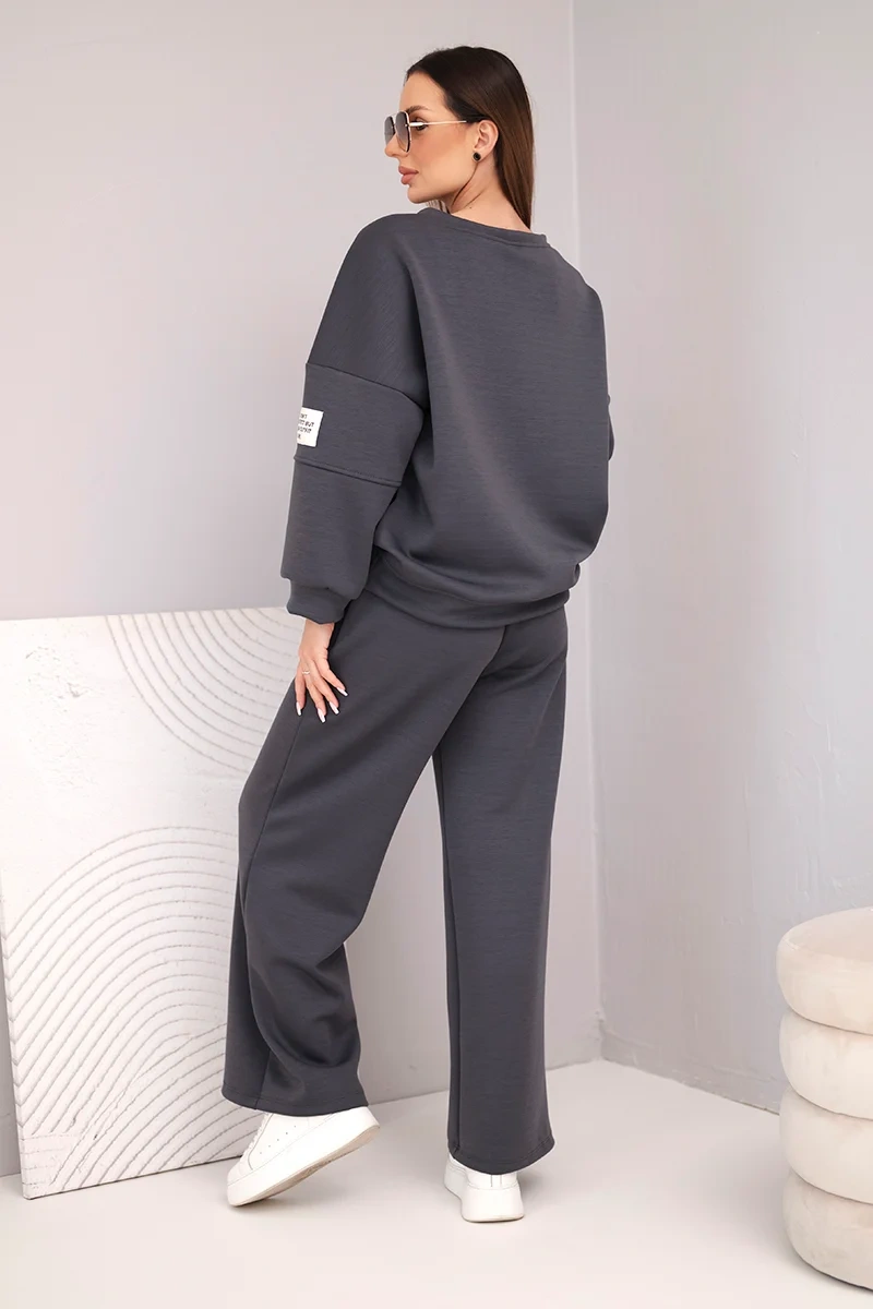 Komplet damski masełko bluza + spodnie grafitowy