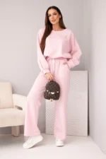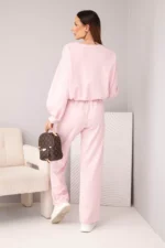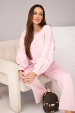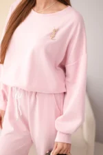 Ten wygodny komplet dresowy damski to idealna propozycja dla kobiet, które cenią sobie komfort i modny wygląd. Bluza z długim rękawem i elastycznym ściągaczem u dołu zapewnia idealne dopasowanie do sylwetki, a delikatny detal w formie ozdobnej aplikacji przy dekolcie dodaje stylowego akcentu.