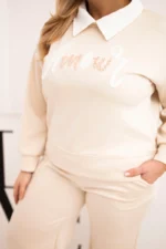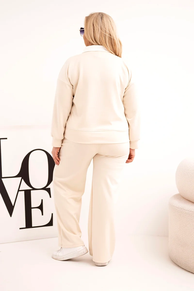 Komplet damski masełko Plus Size z szerokimi nogawkami i kołnierzykiem beżowy