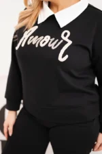 Komplet damski masełko Plus Size z szerokimi nogawkami i kołnierzykiem czarny